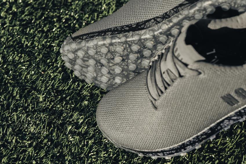 l’entraîneur de gazon de surface s’inspire de brins d’herbe qui ont été répétés et rendus pour créer un motif unique sur la semelle.